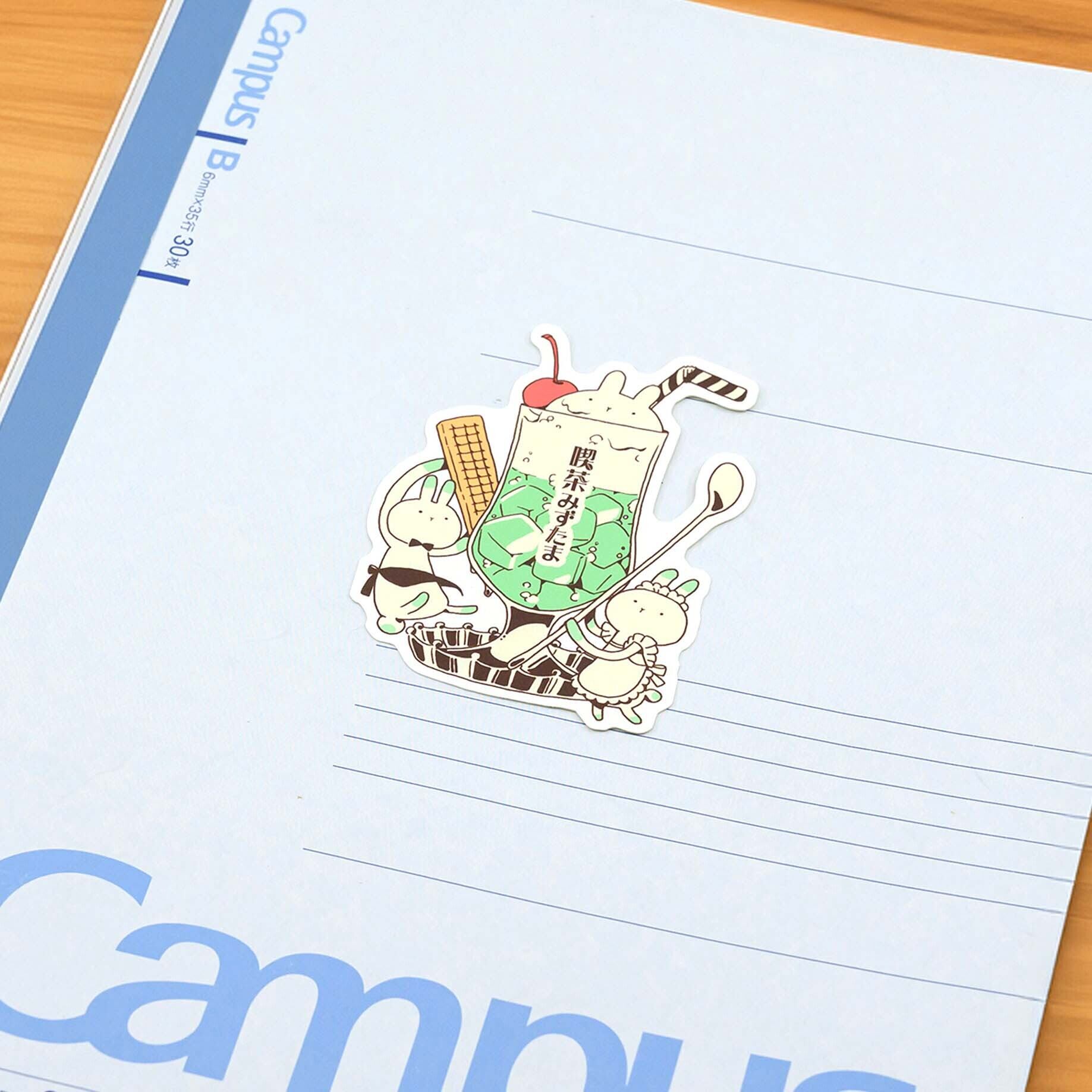 喫茶みずたま名物のメロンソーダフロートと硬めのレトロプリンがステッカーになりました。